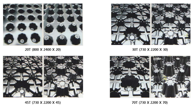 - 하단 불룩나온 온동 차단서 부분이 땅의 수분으로부터 바닥 콘크리트로 전달되는 찬온도 전달을 차단해 통풍효과 및 결로방지가 뛰어나다.