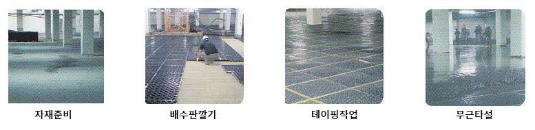 건축물의 지하실 바닥에 일정한 두계의 콘트리트층 타설시 방습을 위해 설치되는 합성수지로 시공시 견고하게 할 수 있게 설계되었고 기둥 및 굴곡층에도 간단히 절취하여 작업의 효율성을 높일수 있다.