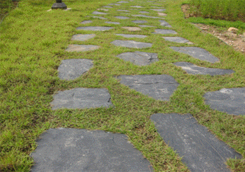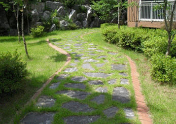 판석의 두께는 8~10cm가량이며, 잔디등 자연의 어우러짐이 좋아 출입로 삭책로 등에 시공됩니다.